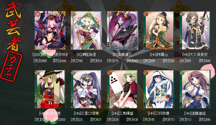 このシンゲンとケンシンとユキムラがお揃いっぽくて好きなので、ユキムラもいつか報酬で出たら頑張りたいなぁ。