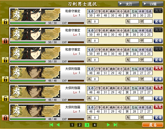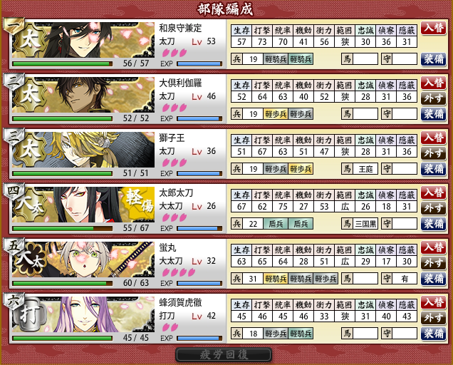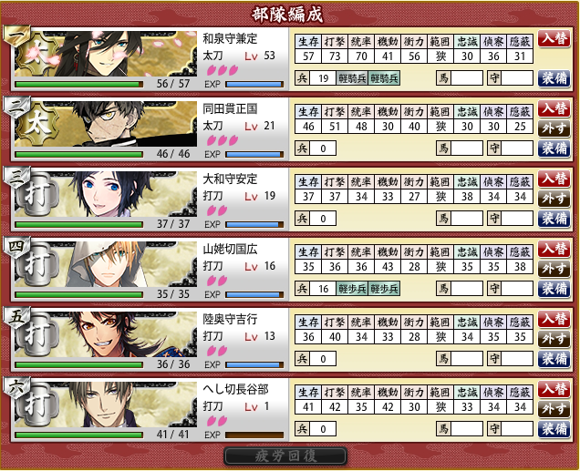 レシピは隊長も重要みたいだけど、一番強い兼さんでそれなり出るから放置。
