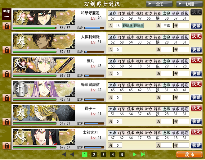 とりあえずlv40まで育ったら隊から外すってして順に育ててきたけど、一期さんがきて、lv38で次郎さんが入らなくなっちゃった~^^;