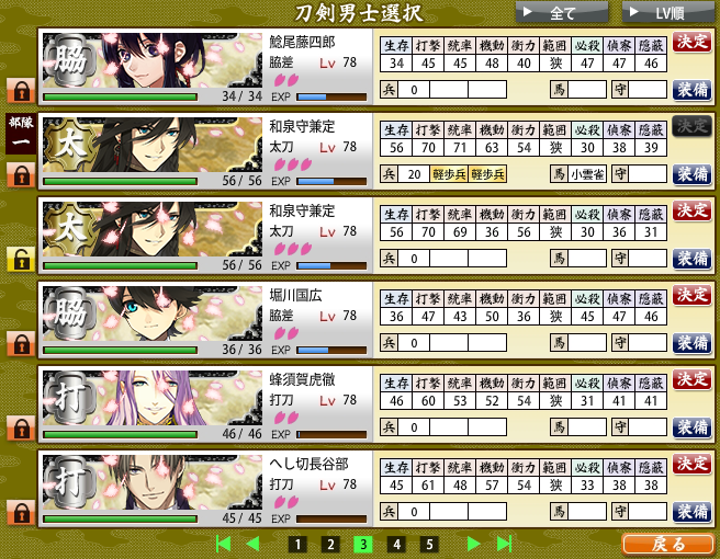 短刀レベル上げはそこそこに、脇差レベル上げで6-2。