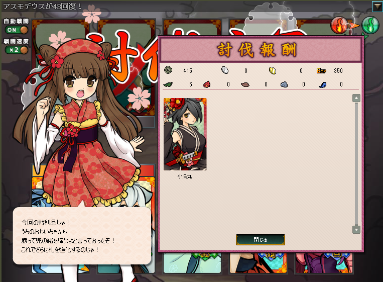 超くらちゃん欲しいから、次は槍で勾玉だな。