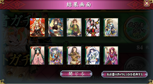武芸者ガチャでは最上と長曾我部の2枚目以降くると、スキル複数乗せできて助かるけどな~