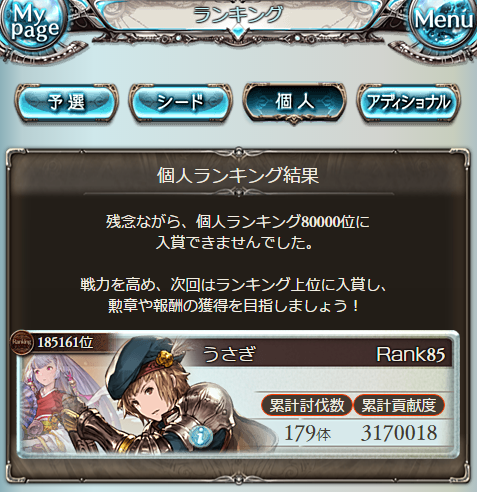 古戦場マルチは自発も助っ人もATに集中して、それ以外の時間はマグナ便乗と日課クエ周回しようかと…。