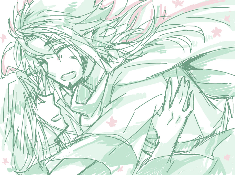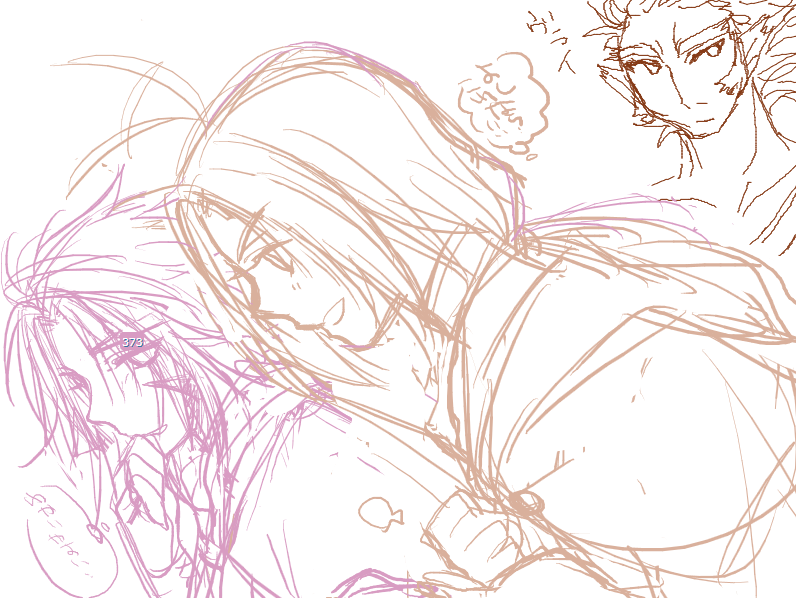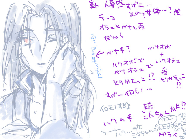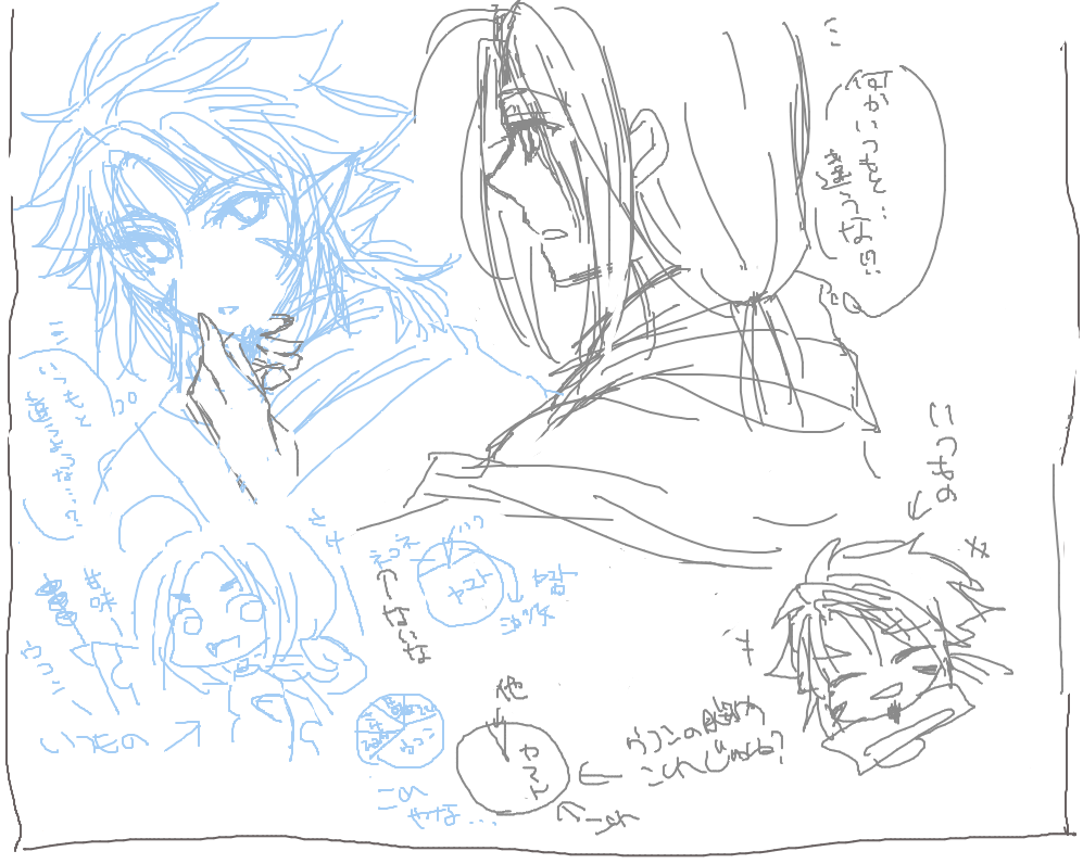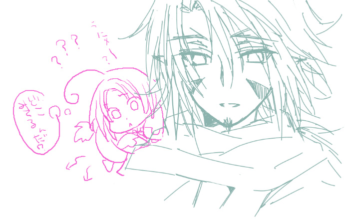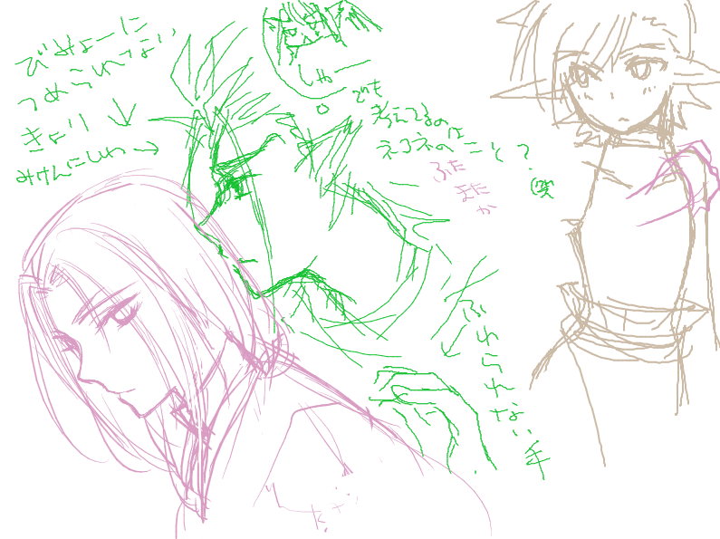 最初は、ダメ元で、遊んでくださる方をツイッタで募集してみる?って言ってたんだけど、絵茶がちゃんと使えるかどうか確認してからのほうがいいよねってことになり、先に二人で入室して、入れることと、描けることを確認したんだけど、そのまま二人絵茶になったという。
