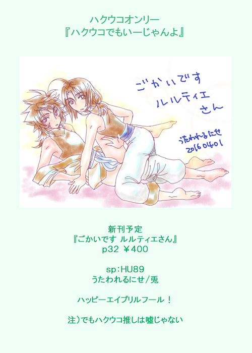 ハクウコ新刊予定案内 2016/04/01(Fri)