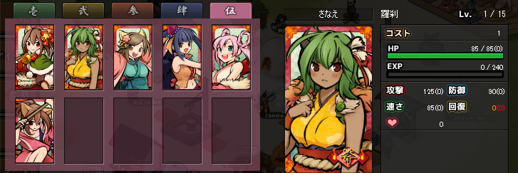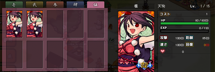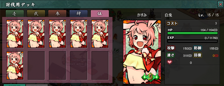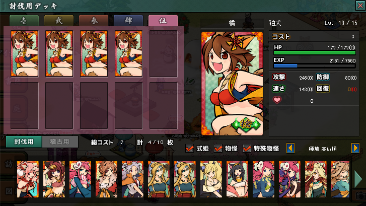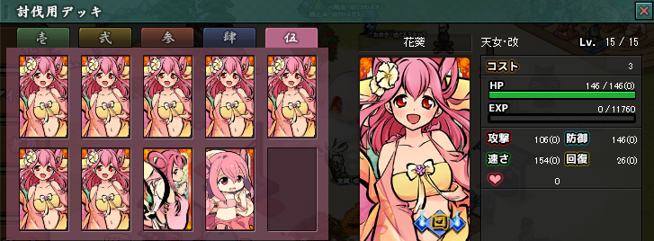最上札5・6枚と梅合成5回分でさくっと五行上げて、さぐめちゃんもあとは早さだけー!