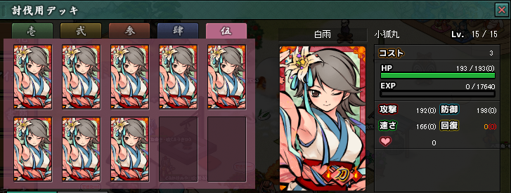 前回イベで貰った歌仙さんの持ち主な武将がSSRだけど初期MR並みに強いから助かる~!