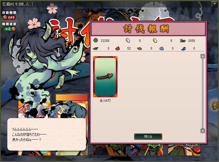 こっちは絶対落ちないから安心なんだけど、2周で物の怪札があふれるから、合成挟むのがちと面倒だー。
