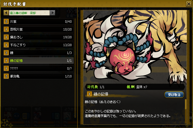怪異も行ける。前回キャンペ延長の方の討伐地で五行筆交換アイテム集めにいそしんでたから全然行ってないや^^;