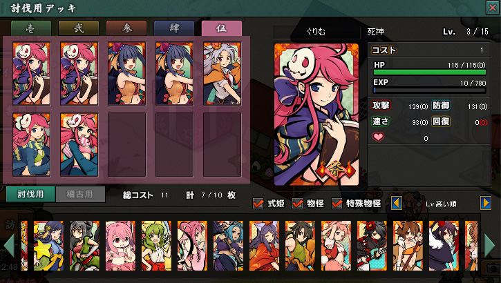 前回の再来ではアイテム200個必要だったし、今より手持ち姫も弱かったから、確か金(銅銀金で討伐地難易度が3種ある)で回れなかったんだよね^^;