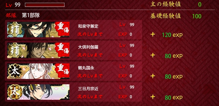 太から打になった同田さんと長曾根さんlv53の2人以外全カンストー。