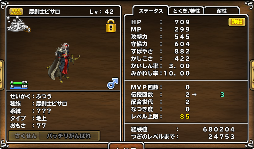 lvは1になるから、また伝授でlv50に届かなかったけど強いぞー!