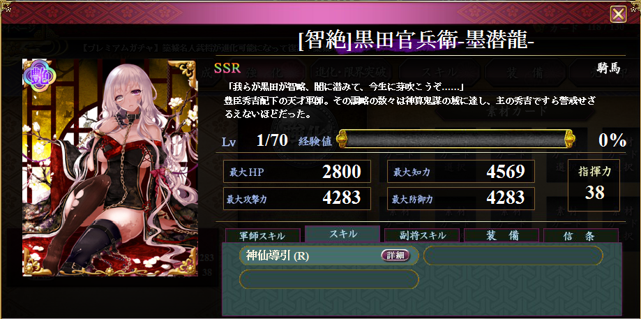 久しぶりに武芸者ガチャでSSRきたー!