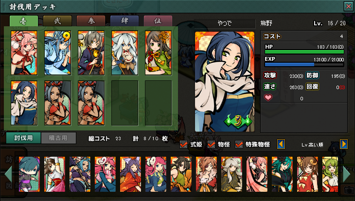 この日のためにと(ちょっと前からだけど)頑張って貯めておいた虹札5枚で一番低いレア度の姫5人と全敗…orz