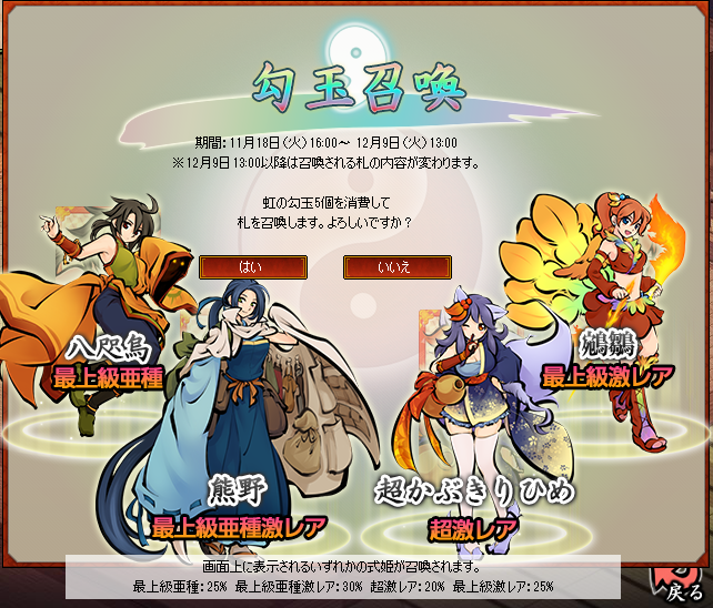 虹勾玉(5個)でしか引けない実装されたばかりの新姫なのですが。