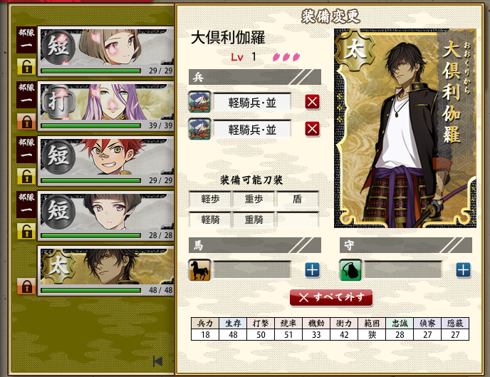 兵装備も刀の種類で装備不可になると勿体ない。