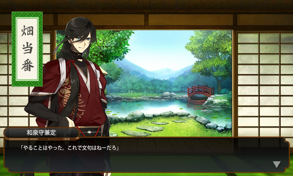 内番では今回馬の子チョイスで畑にした兼が聞けなかった残念。