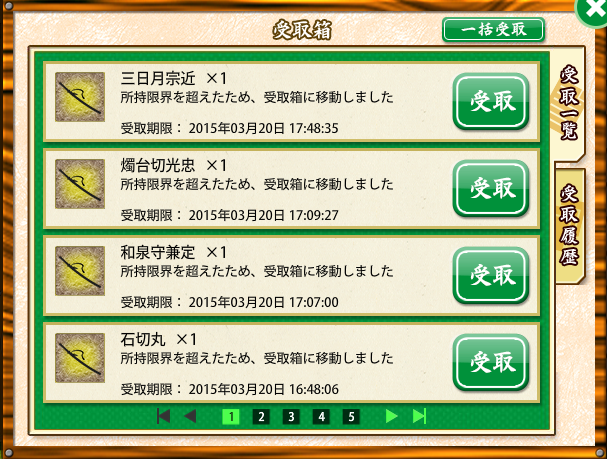 虎徹2本来た段階の枠空き次第で枠10本増やす課金しなきゃかな^^;