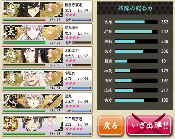 脇短刀が特攻になるステージだと思えばいいみたい。