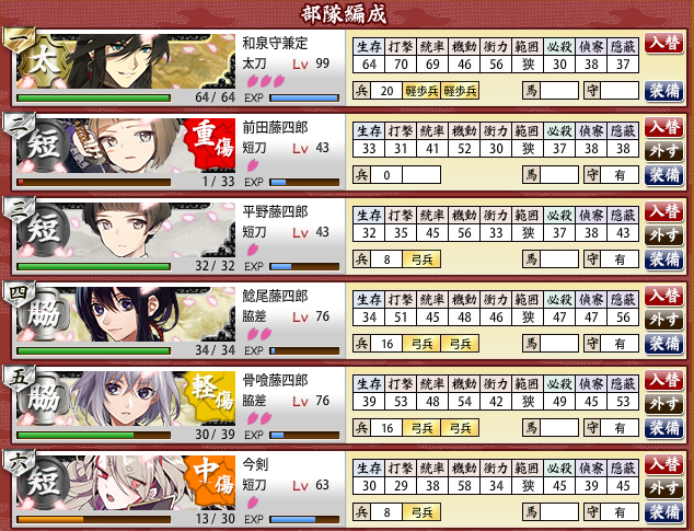 次は今剣ちゃん70・短刀50・脇差80 になった辺りで挑戦するか。