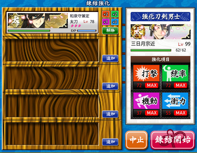 短刀レベル上げはそこそこに、脇差レベル上げで6-2。