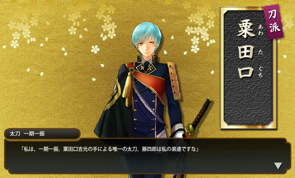 顔グラ同じ子が3つとか並ぶとポン雀思い出すな、新選組とか三条とか藤四郎9口とかで役あるんだよ、あ、ちょっと面白いかも(笑