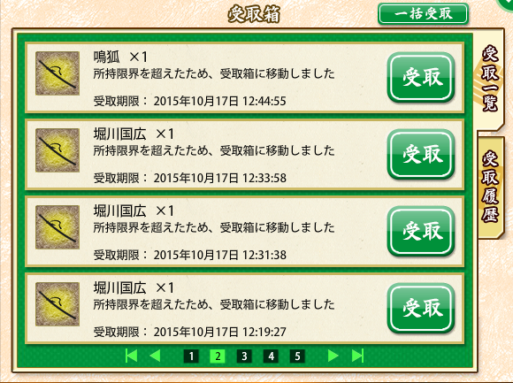 あとは日本号の本実装待ちと、小狐狩りに5-3周回だなー。