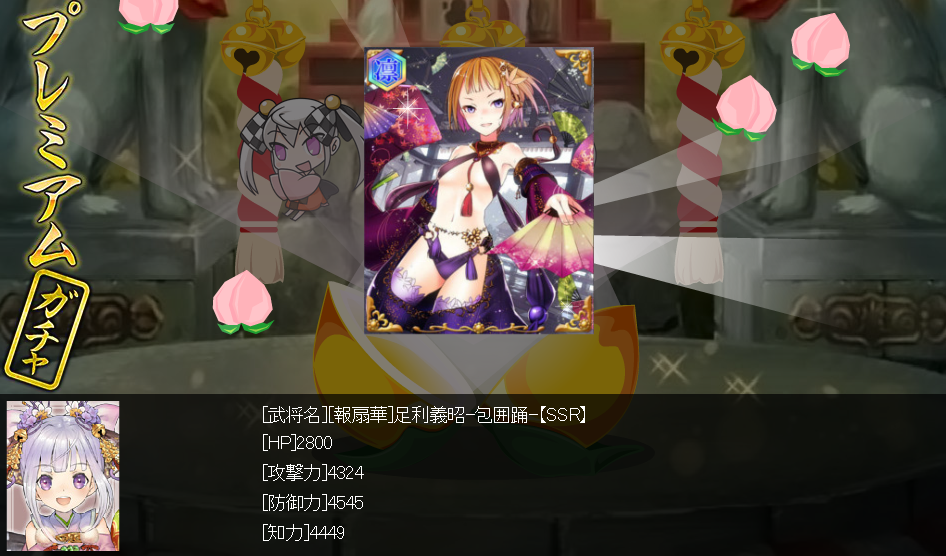 前回イベで貰った歌仙さんの持ち主な武将がSSRだけど初期MR並みに強いから助かる~!