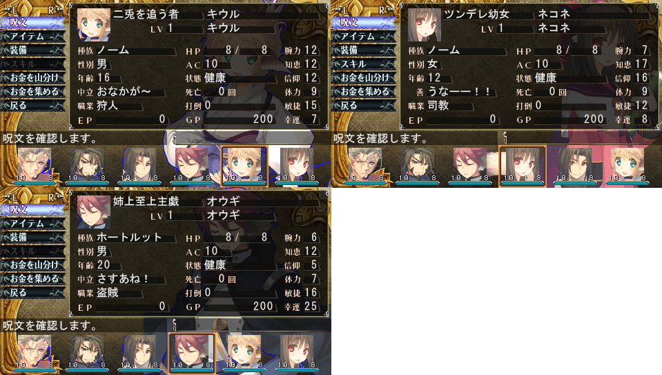 *ハクを戦士、ネコネを魔術師にしていたのですが、回復役がいないことに気付き、転職。