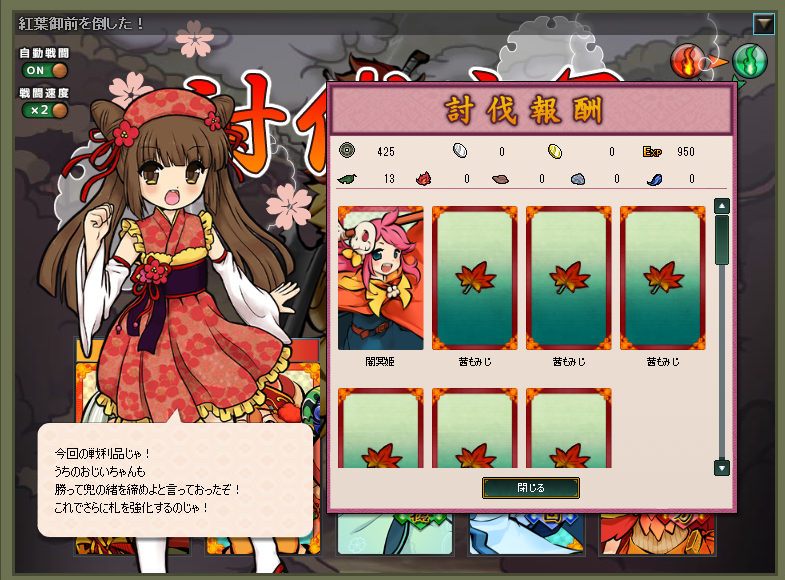 持ってたぐひんと邪鬼の5体で運悪いとボスで負ける感じかな?