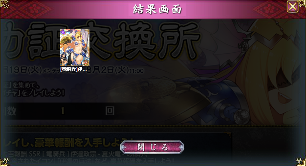 流石に3枚目の伊達は来なかったけど、MR化で十分すぎるほど運良かったからな~><