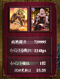 2時開始の新イベ、道具使いつつ走ってたら、まさかの個人順位1位取ってしまった(笑