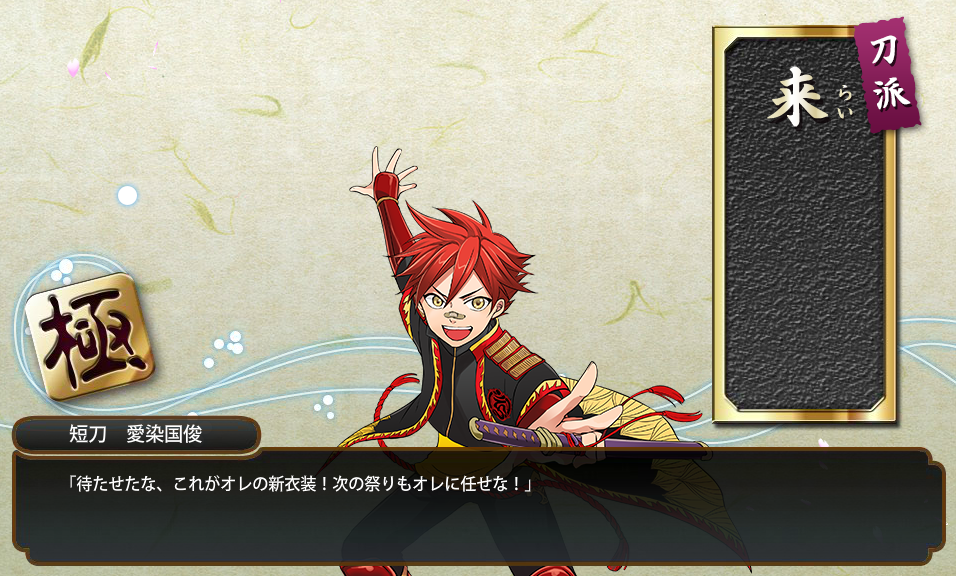 うちの極は平野前田・今剣・愛染・小夜 で、刀派全種が揃うことになった(笑
