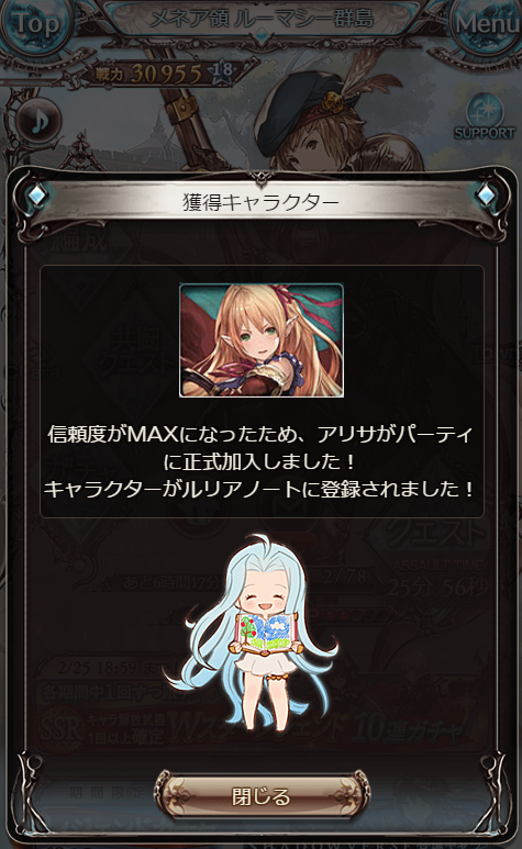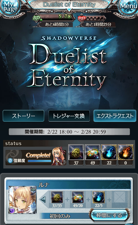 他のマルチでは信頼度上がらないし、イベ周回で20だったから、時間かかった。