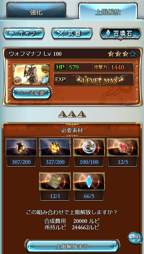 マナフの最終上限解放素材集まった~。