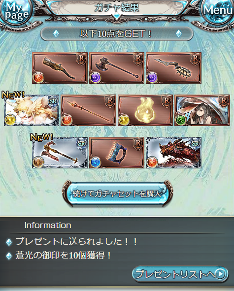 単発チケ10枚をまず引きます…2回目でSRきたー…あれ?SSR?
