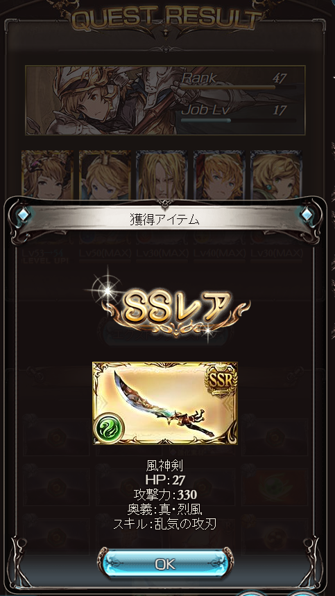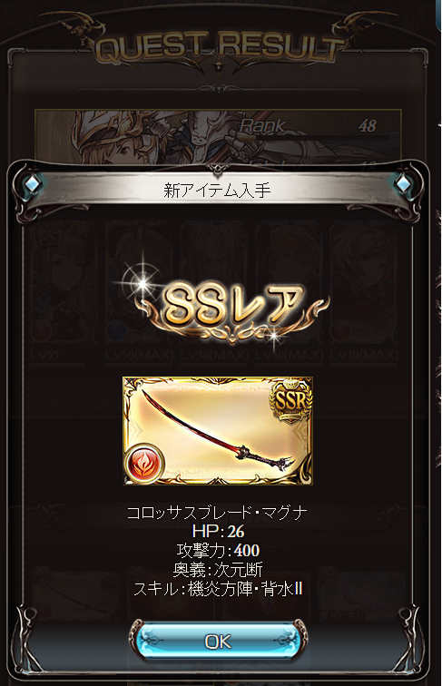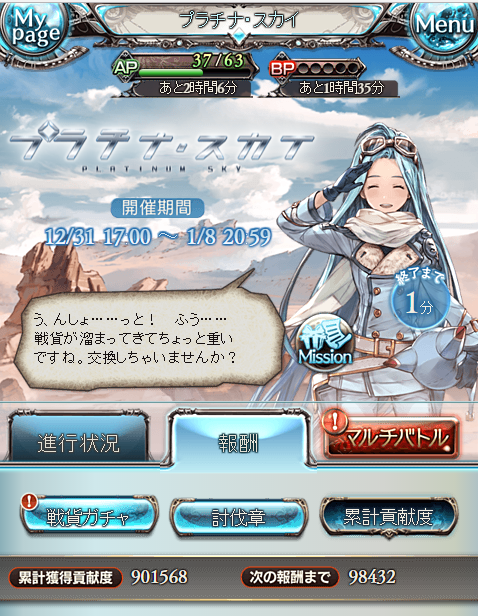あと金7枚(マルチバトル3・4回分?)でSSR武器に届いてないのは惜しかったかな(笑