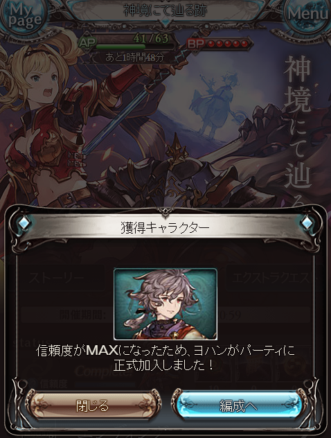 イベキャラは初日にレースイベに付き合わせてたら信頼度ガンガン上がったんで、早々に仲間に。